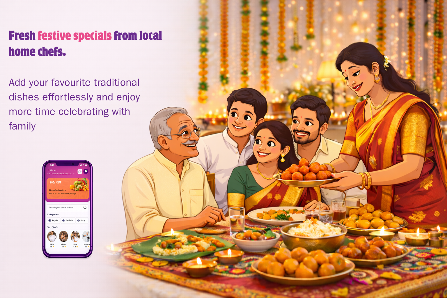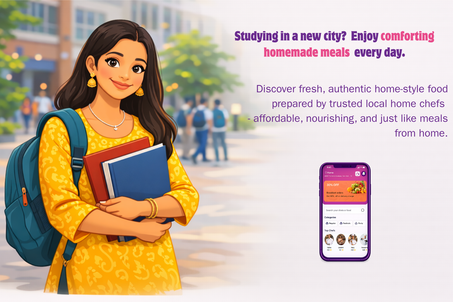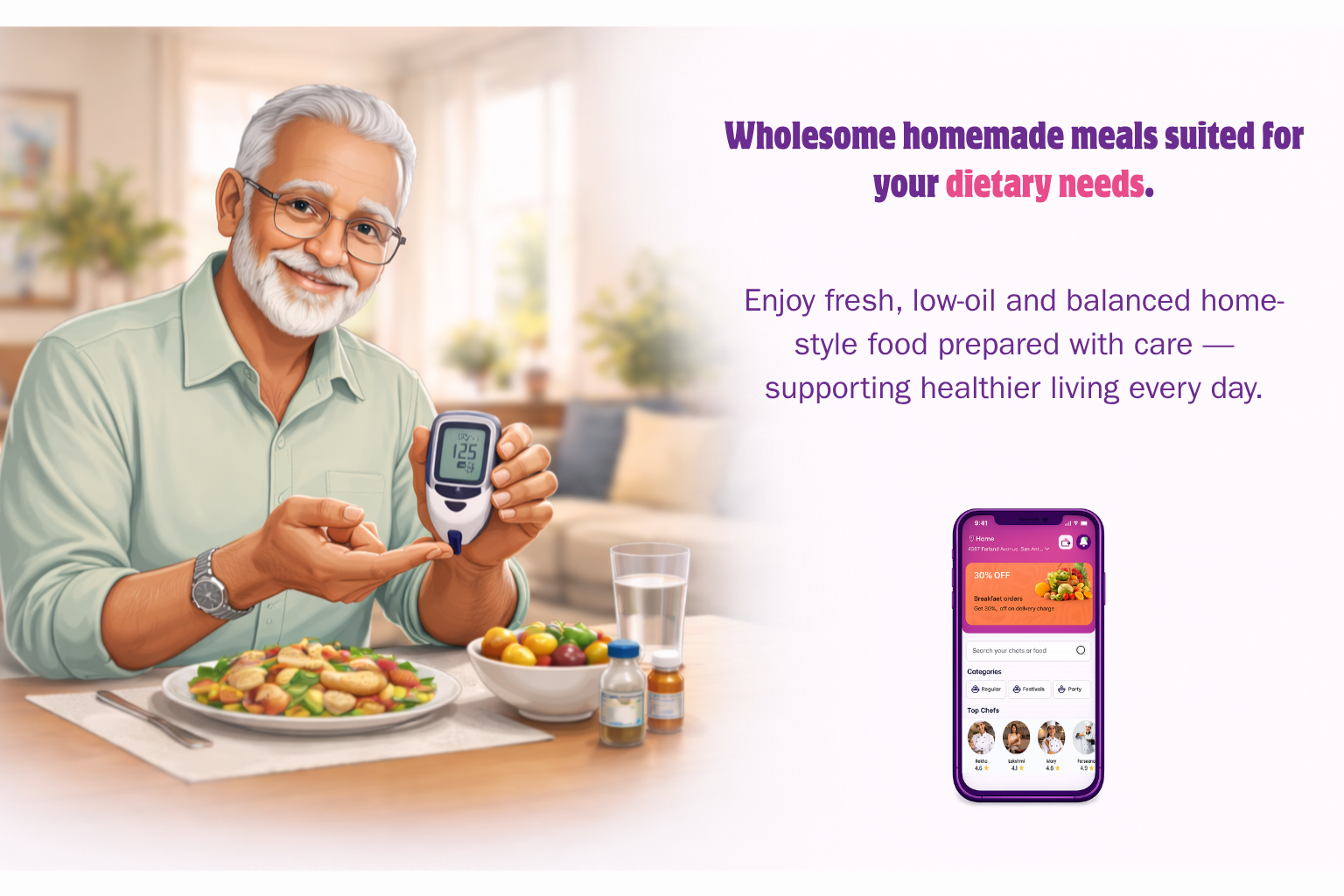 Fresh, nutritious meals prepared by trusted home chefs.