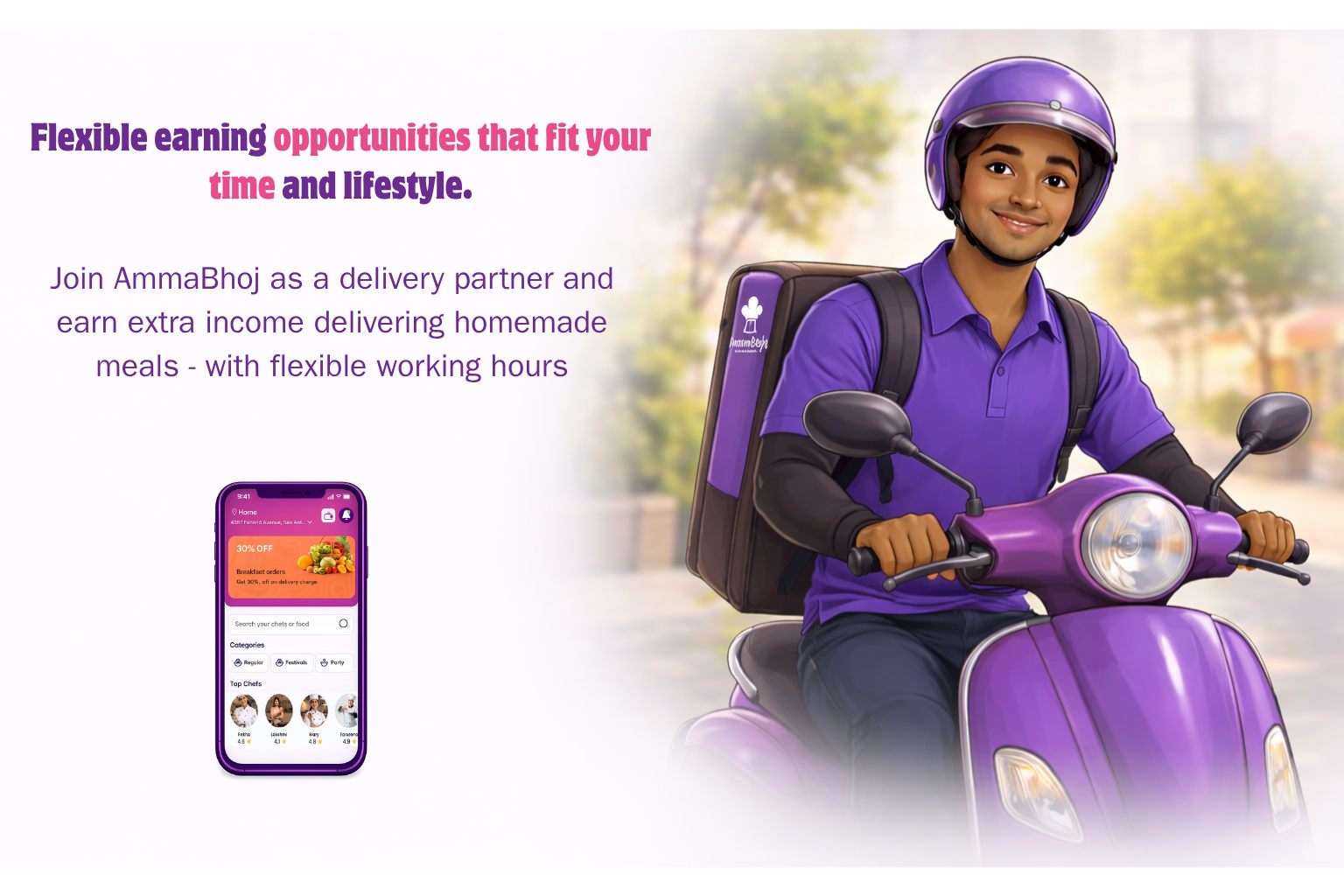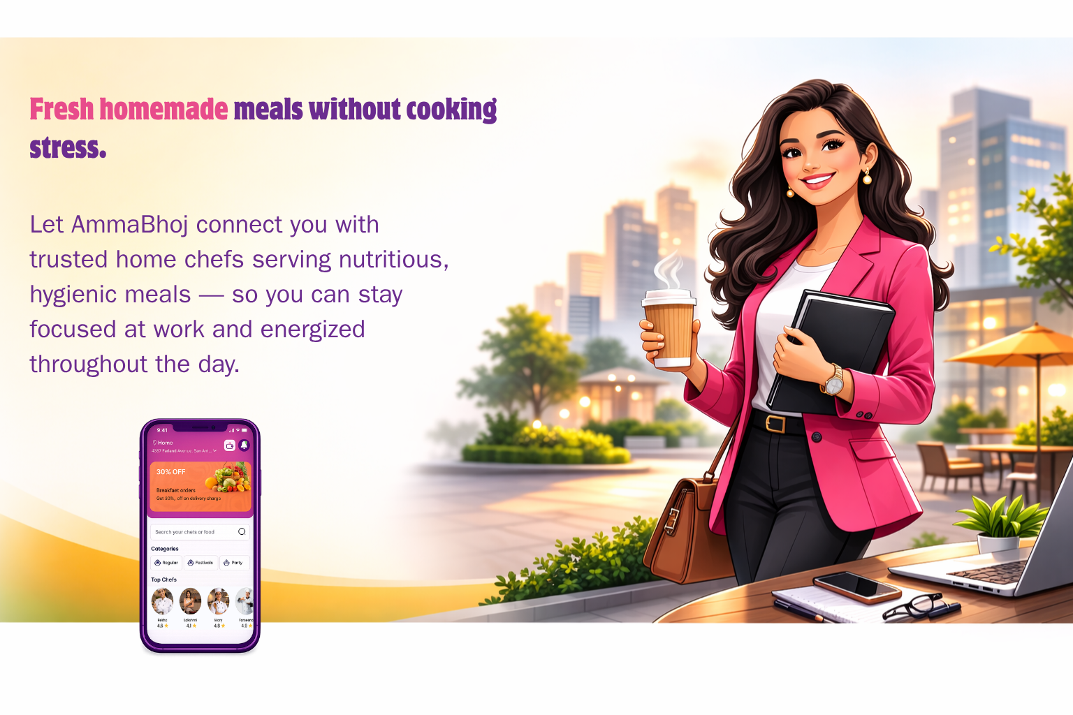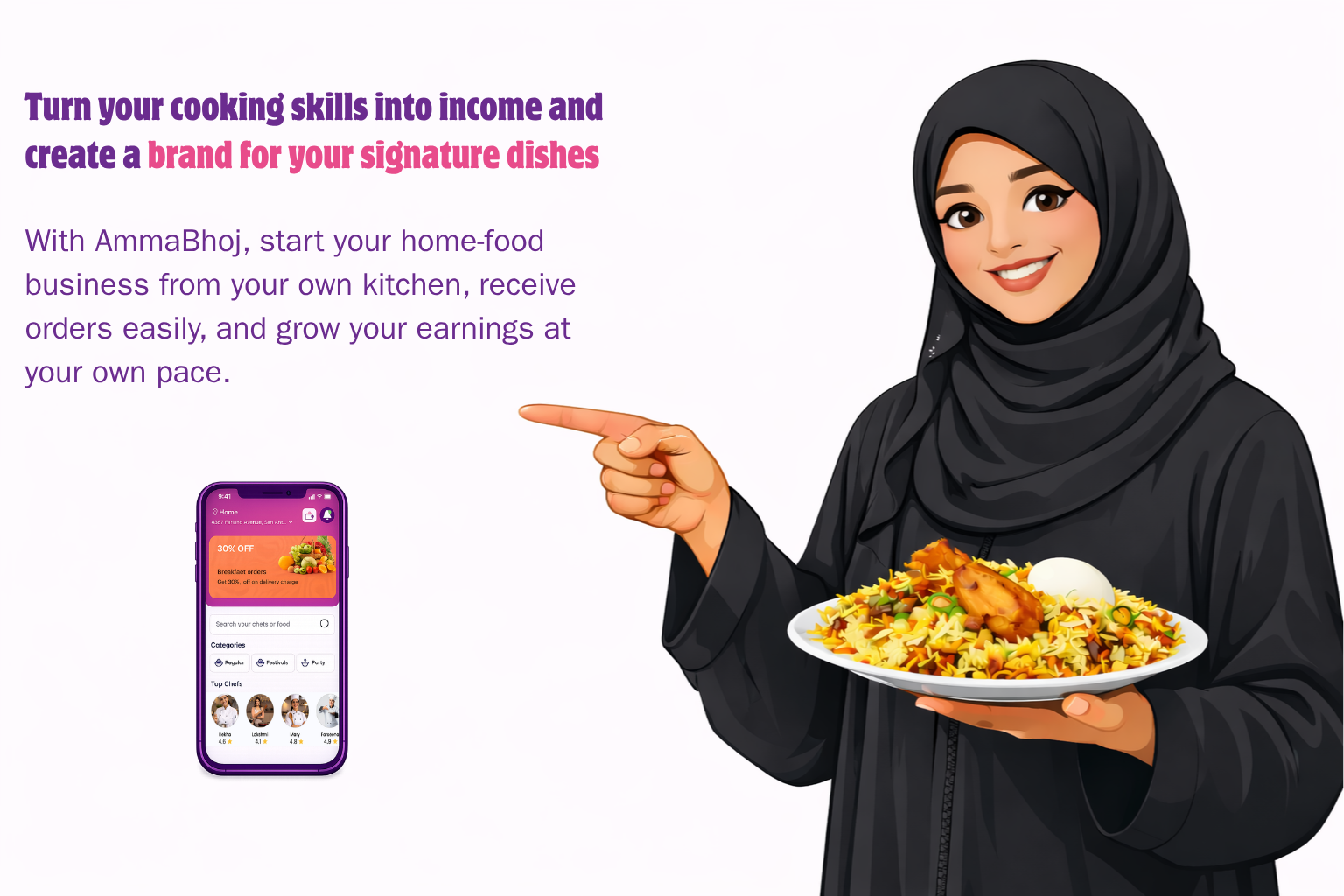 Discover delicious homemade meals prepared by passionate home chefs in your neighbourhood. AmmaBhoj connects food lovers with authentic home-cooked dishes made with care and tradition.